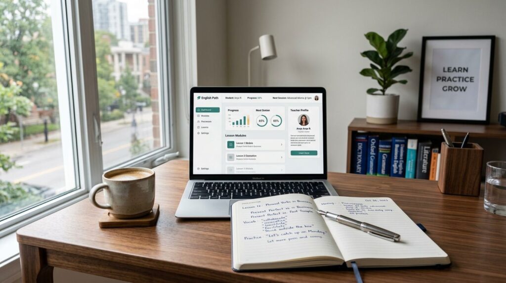 Oferecemos treinamentos individuais e totalmente remotos, moldados às necessidades de cada aluno ou empresa (inglês para negócios, viagens, entrevistas, certificações), garantindo flexibilidade e personalização.